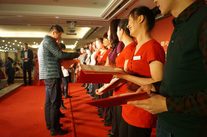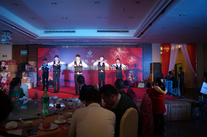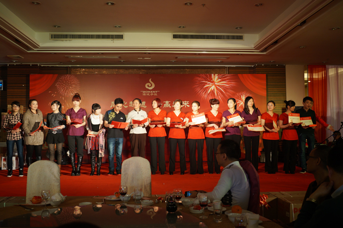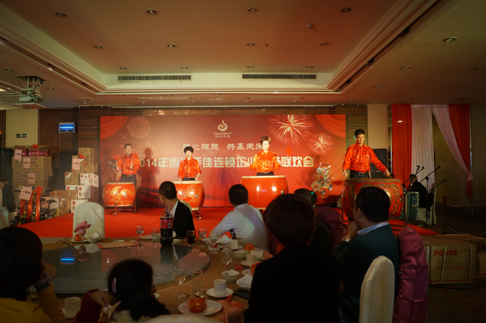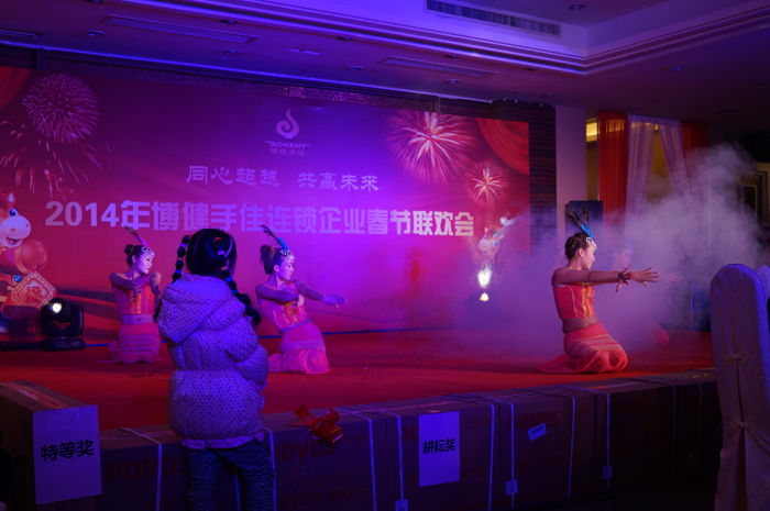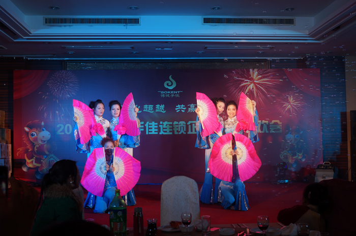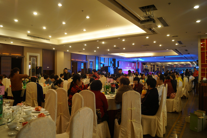 新的一年,新的开始。博健手佳员工春节晚会作为企业文化的重要部分,从2010年开始,已成功举办五届。每年的大年三十,没有回家过年的员工们在公司这个大家庭,跟同事们一起吃年饭,一起参加春节联欢会,抽奖,年度优秀员工颁奖等活动。 2013年,是员工们努力拼搏的一年,是公司不断壮大的一年,也是公司值得骄傲的一年。在年底的最后一天,近700名员工欢聚一堂,在酒店聚餐后,各店开始准备自己精彩的节目,在联欢会中,博健手佳还提供了液晶电视、折叠自行车、家纺四件套、电炖锅等丰富的礼品作为幸运抽奖,对年度优秀员工进行颁奖。这次的春节联欢晚会大家欢聚一堂,其乐融融,公司秉承“用爱心做事,用感恩的心做人”的企业核心价值观关爱员工,拉动员工凝聚力和增进员工对公司这个大家庭感情。 在酒店 共享 团圆餐